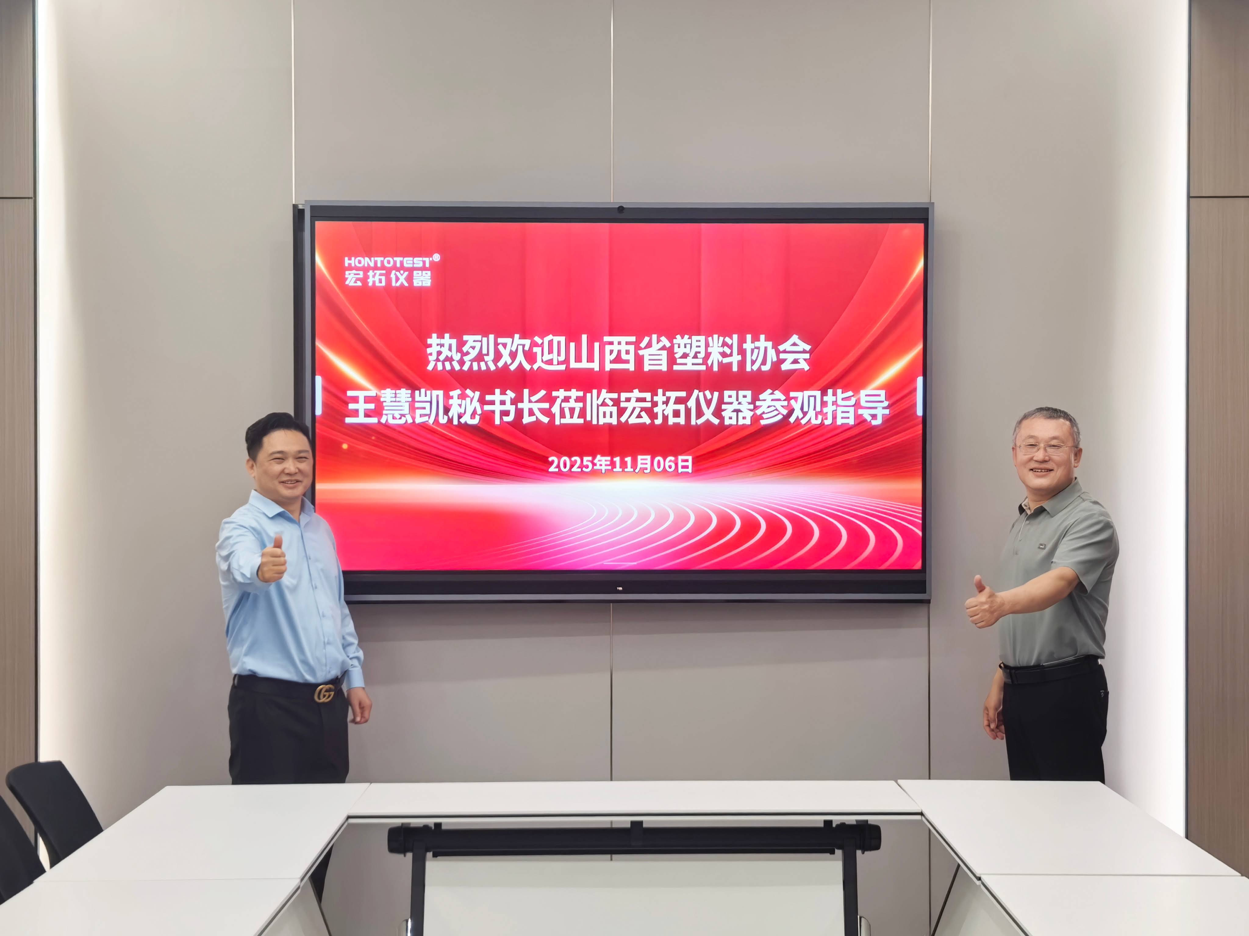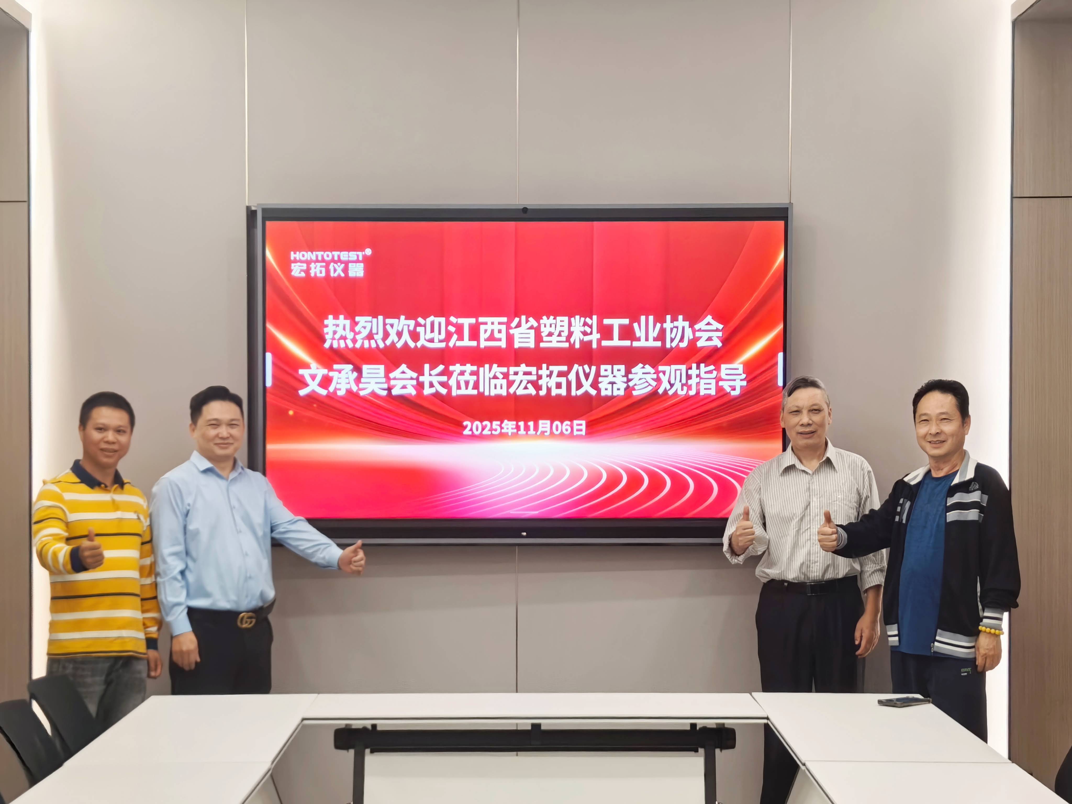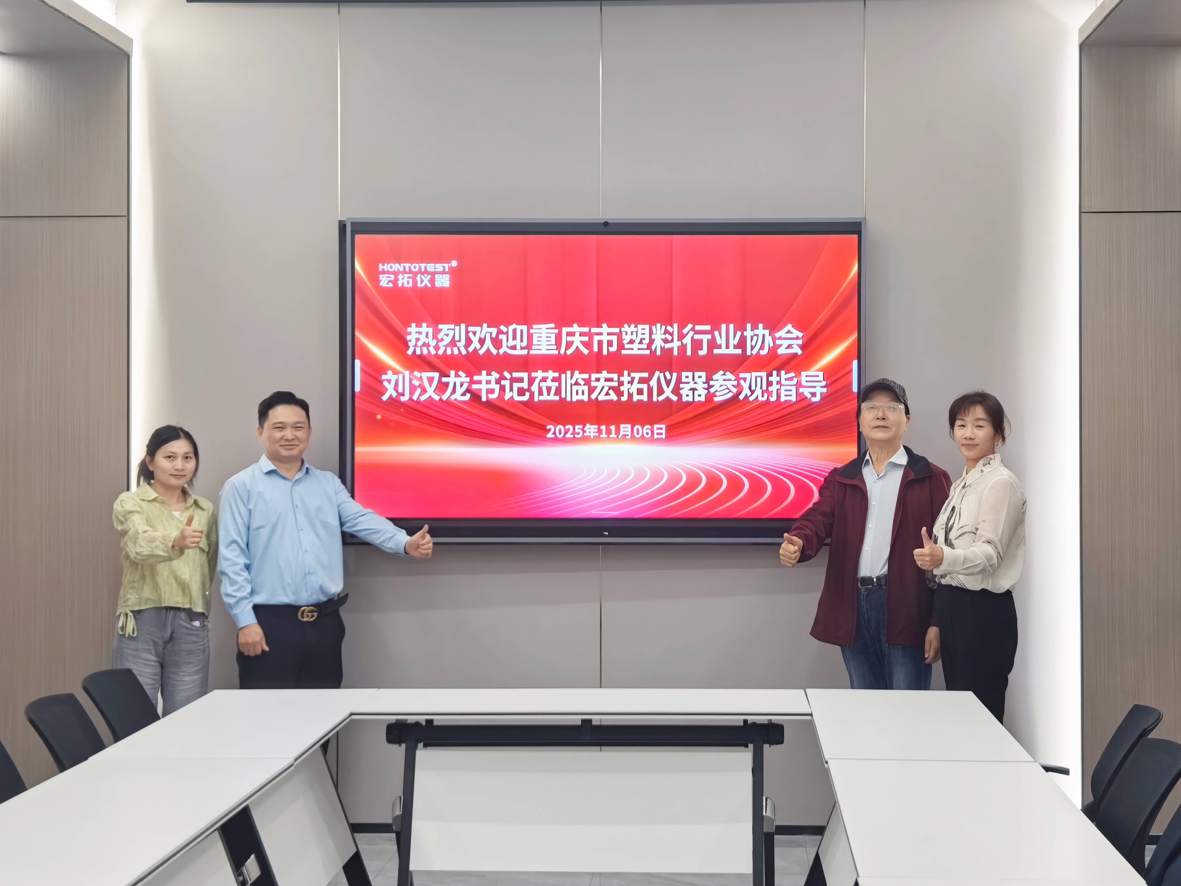 2025年11月6日,由重庆市塑料行业协会刘汉龙书记、江西省塑料工业协会文承昊会长、山西省塑料协会王慧凯秘书长带领的塑料协会参观团齐聚广东宏拓仪器科技有限公司,在董事长钟从岗的全程陪同下进行参观。此次到访参观不仅全面展示宏拓仪器在塑料检测仪器行业内的专业能力,也为行业协同发展搭建高效的交流平台。